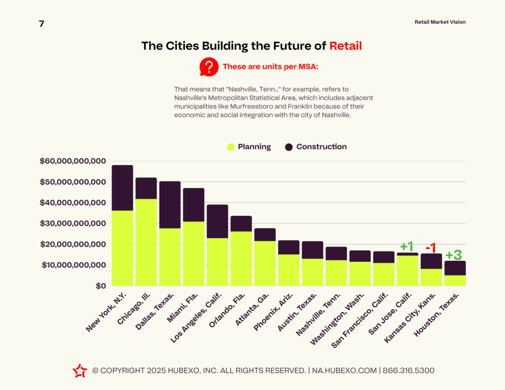 Our Q2 2025 retail market vision report showed that Houston, TX, was up 3% since last quarter. Since retail follows multifamily and single-family developments, this could suggest positive growth for this construction pipeline.